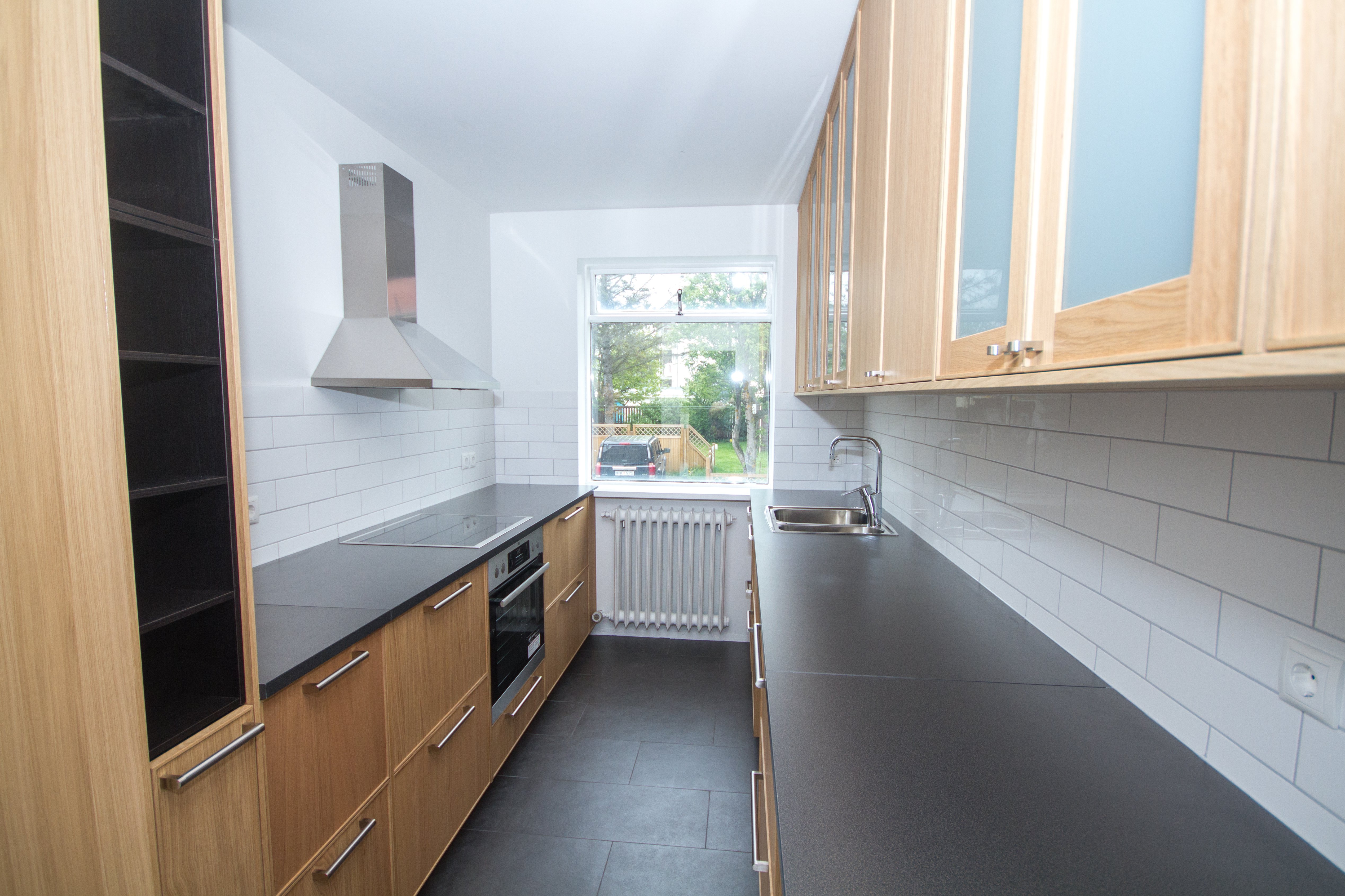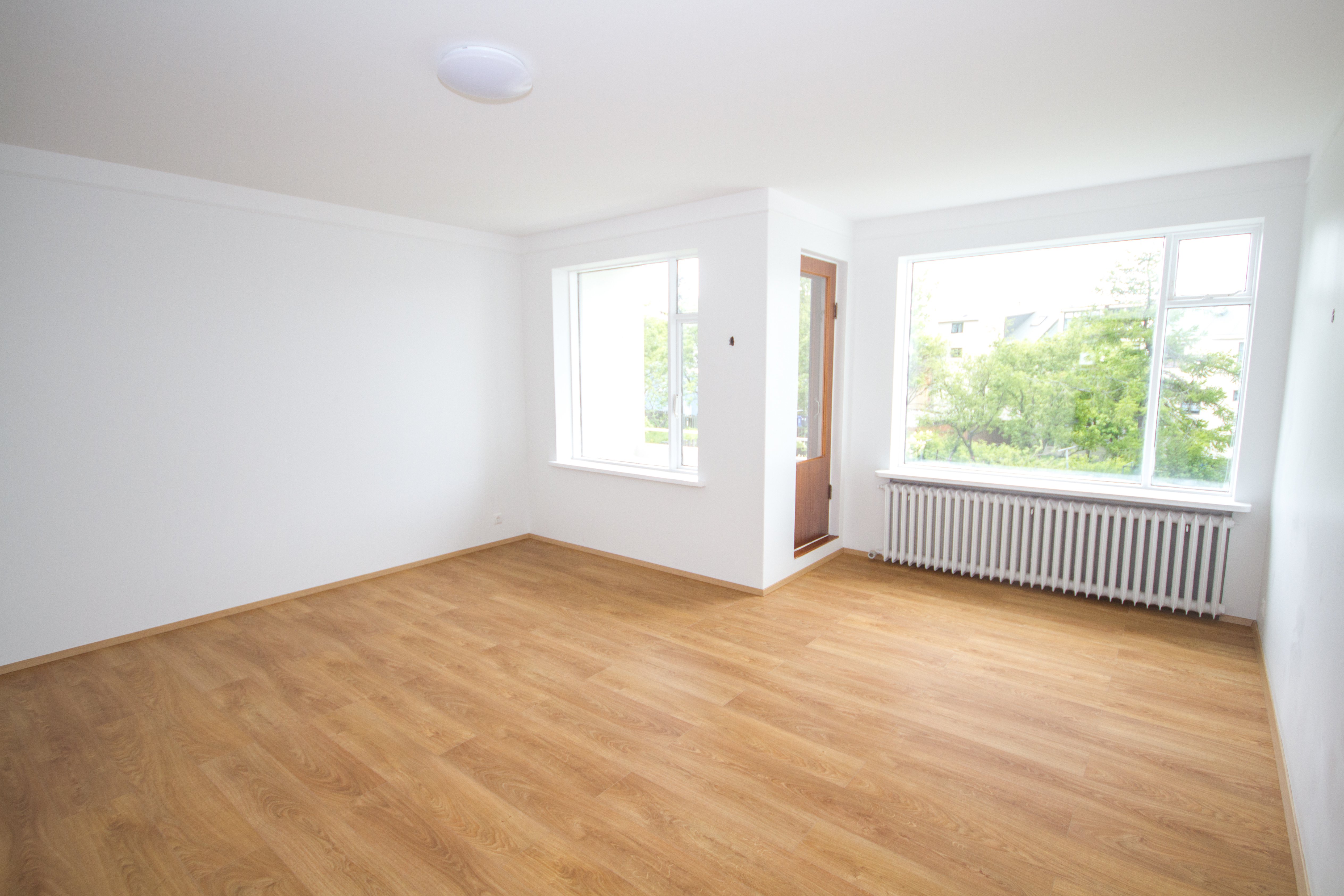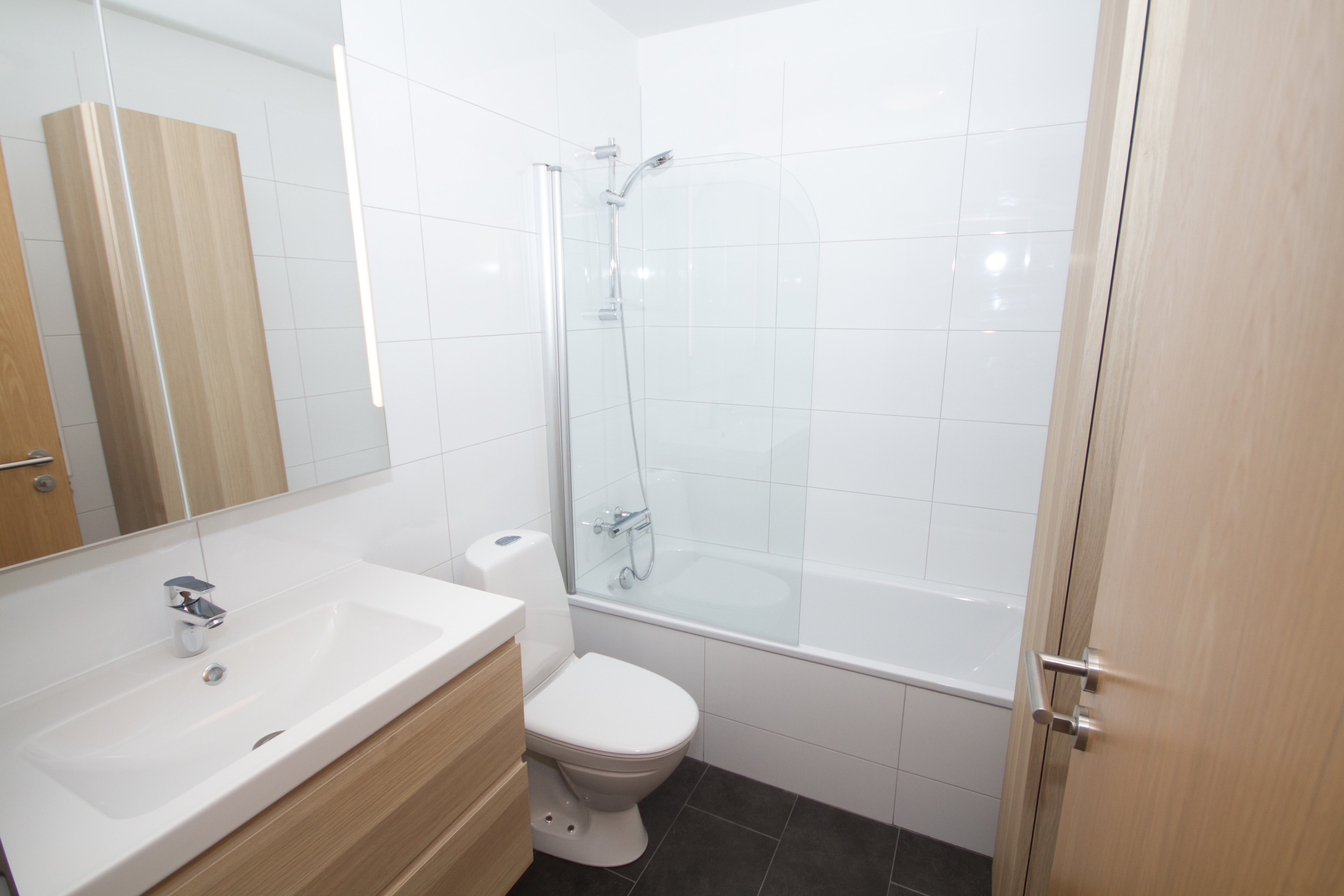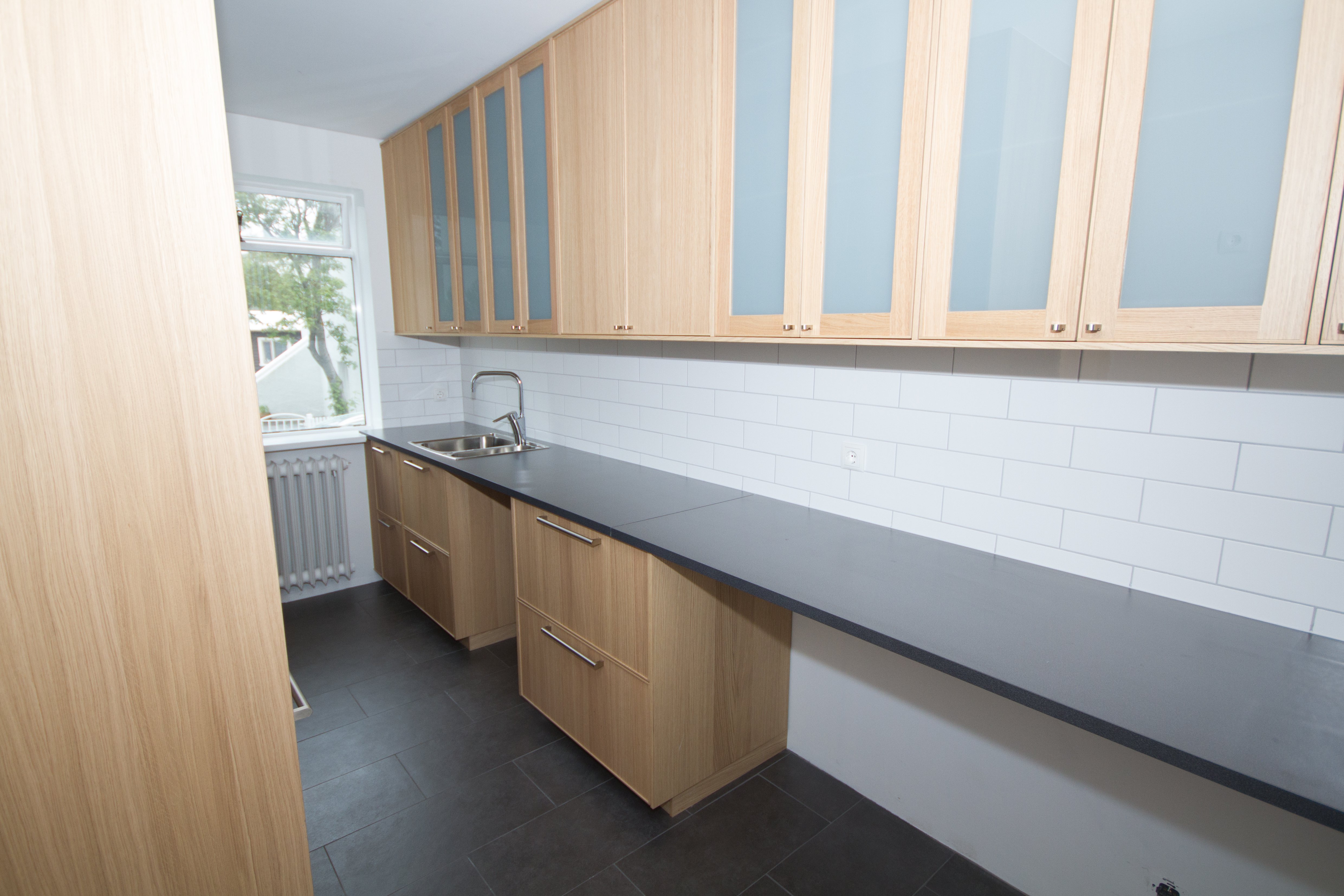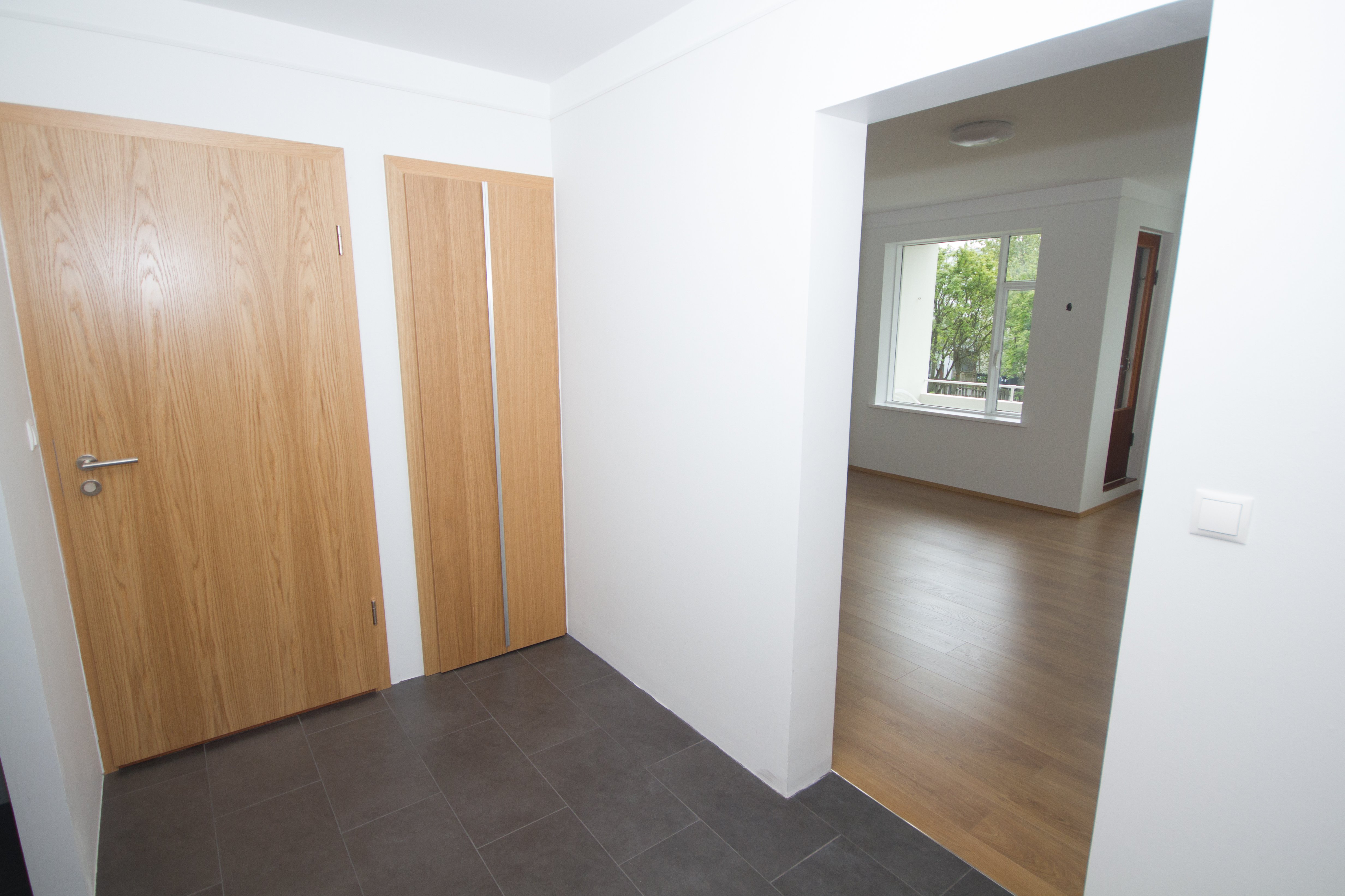og eldhús með nýlegri innréttingu. Íbúðini fylgir geymsla.