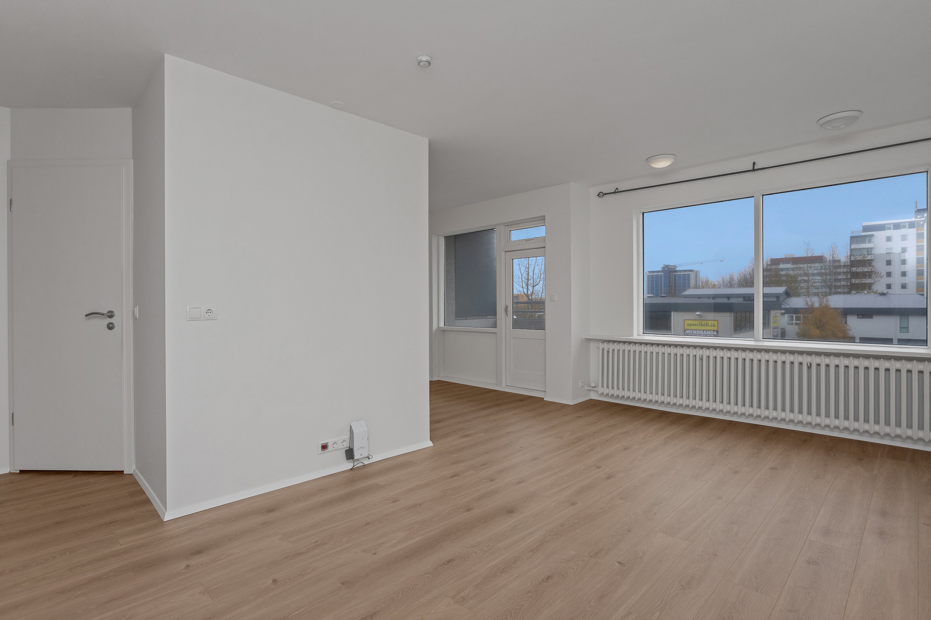 Íbúðin skiptist í anddyri með góðum fataskáp, eldhús með snyrtilegri innréttingu samliggjandi stofu þar sem gengið er út á svalir, eitt svefnherbergi og baðherbergi með sturtu.