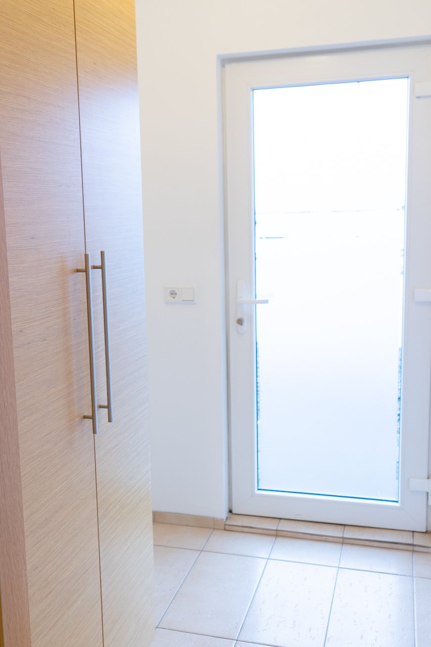 Íbúðin skiptist í forstofu með fataskáp, eldhús með snyrtilegri innréttingu og stofu í sameiginlegu rými þar sem gengið er út á litla verönd, tvö svefnherbergi með fataskápum, baðherbergi með baðkari/sturtuaðstöðu og þvottahús. Flísar eru á gólfum í alrými og á baðherbergi en parket er í svefnherbergi.