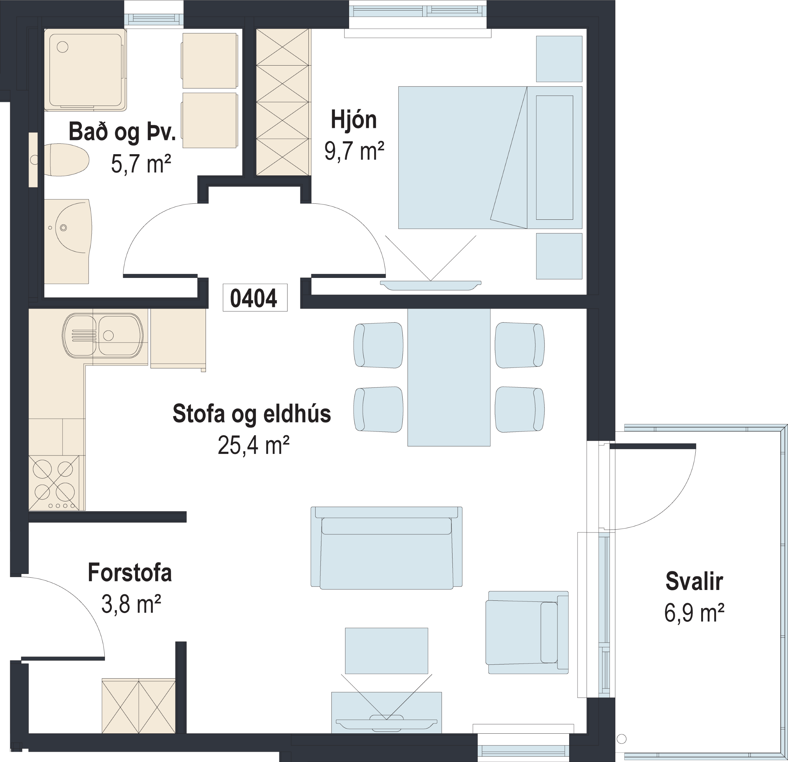 59m2· 2 herbergi
