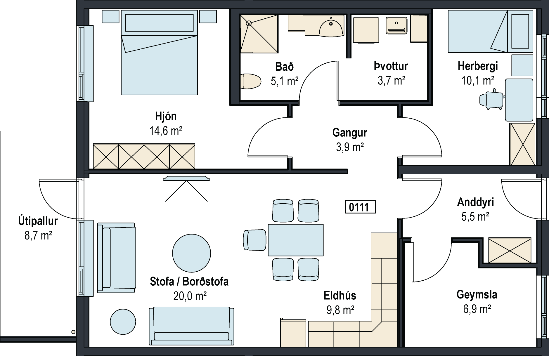 91m2· 3 herbergi