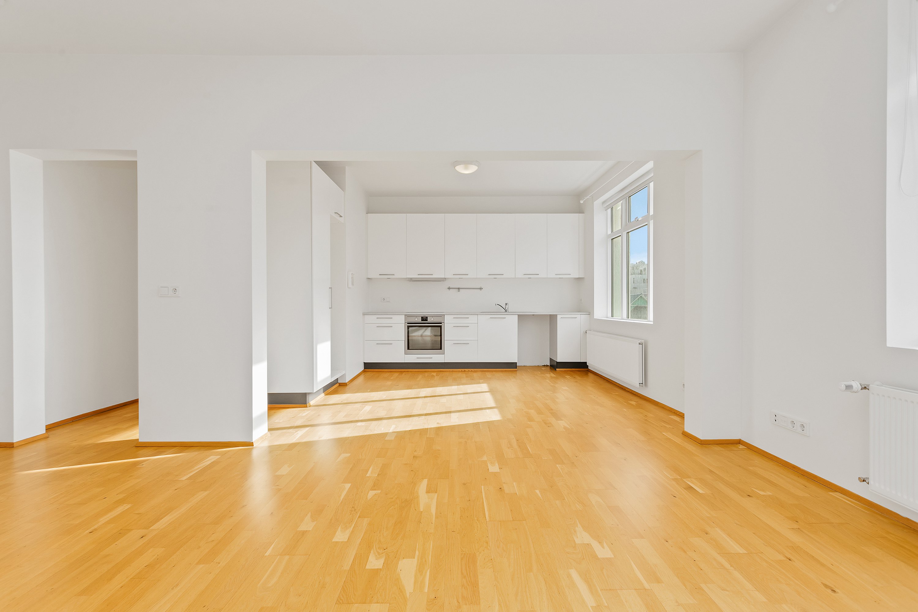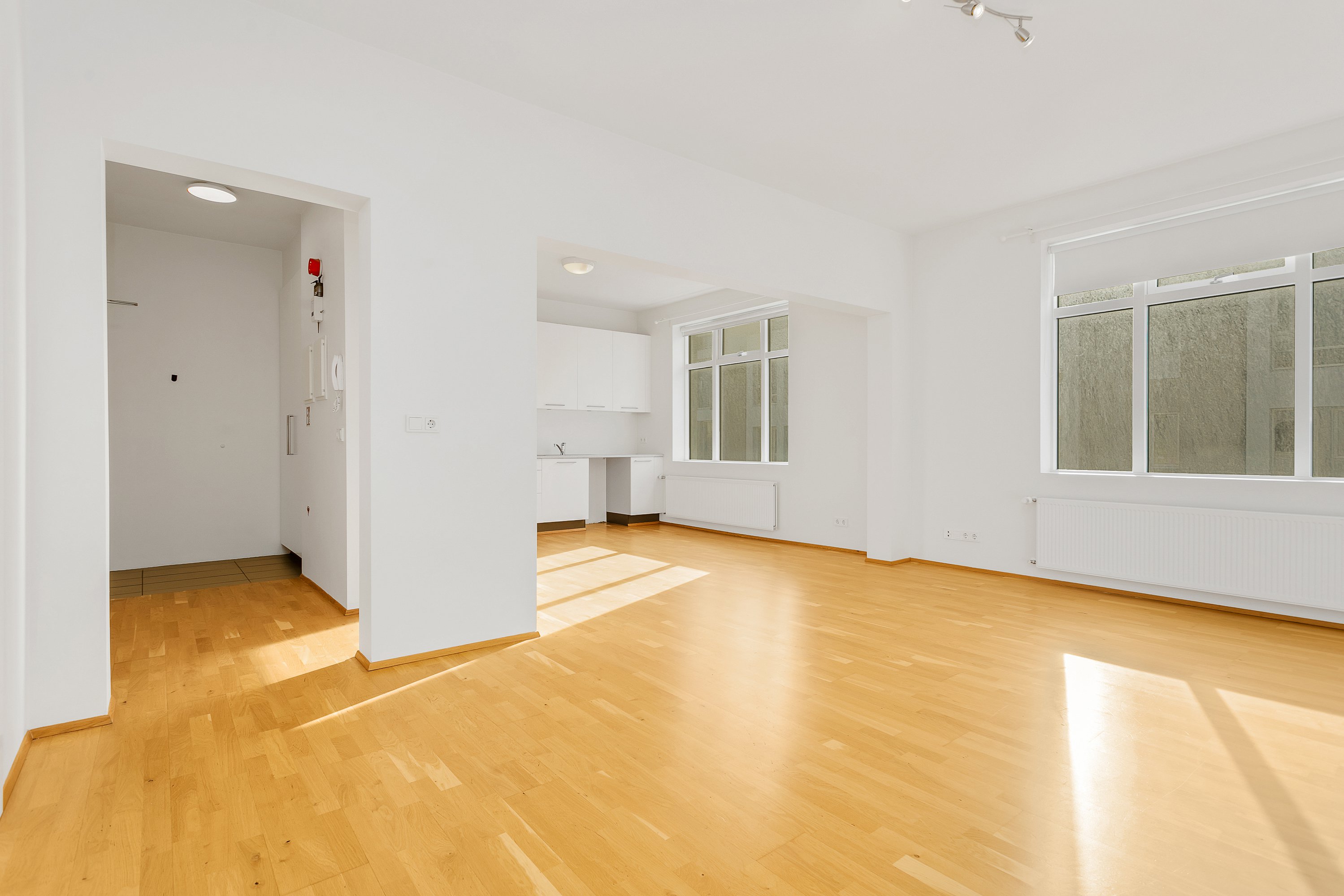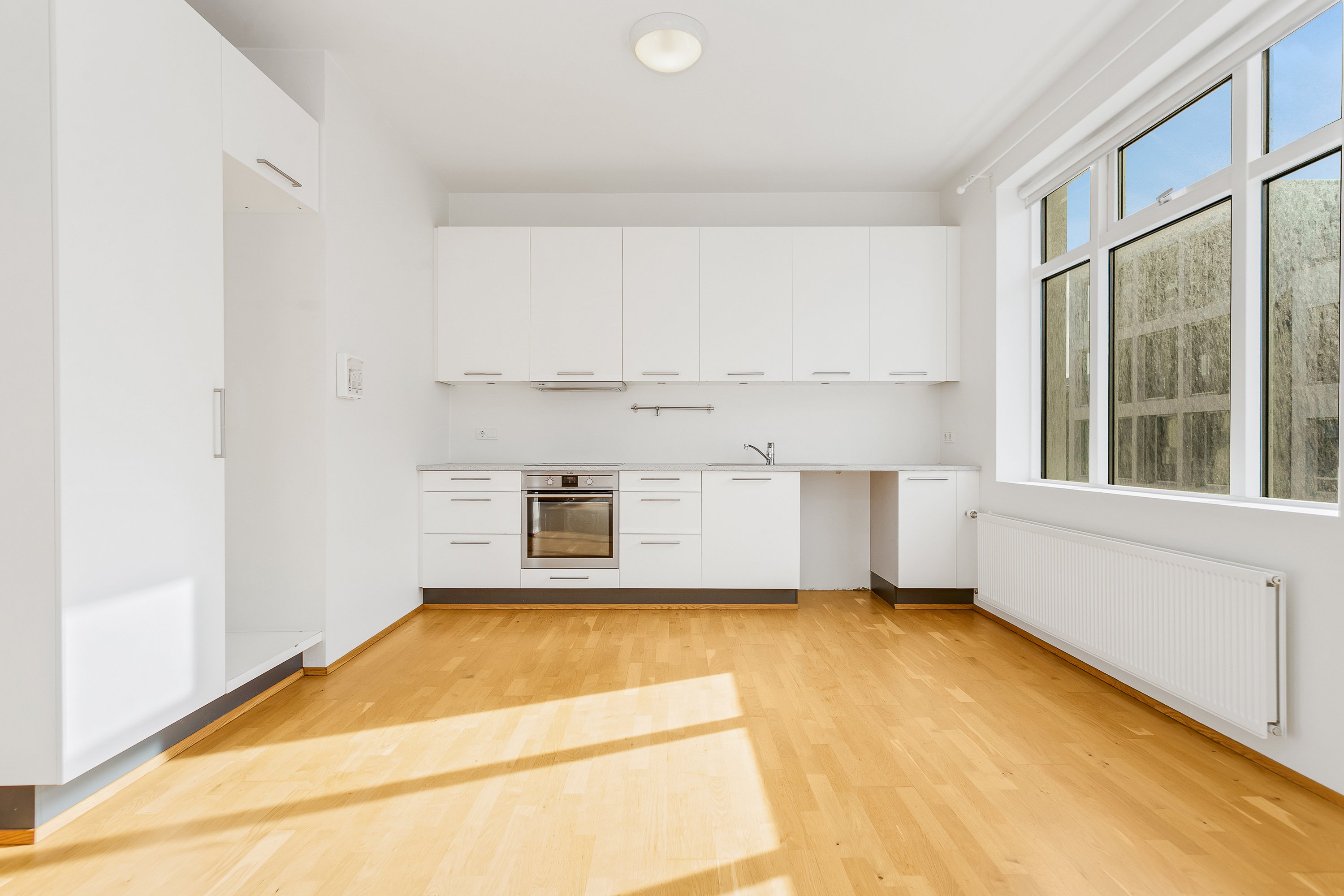 Íbúðin er 85,6 fm og skiptist í rúmgóða stofu og eldhús í sama rými þar sem gengið er út á svalir, eitt svefnherbergi og baðherbergi með tengi fyrir þvottavél.