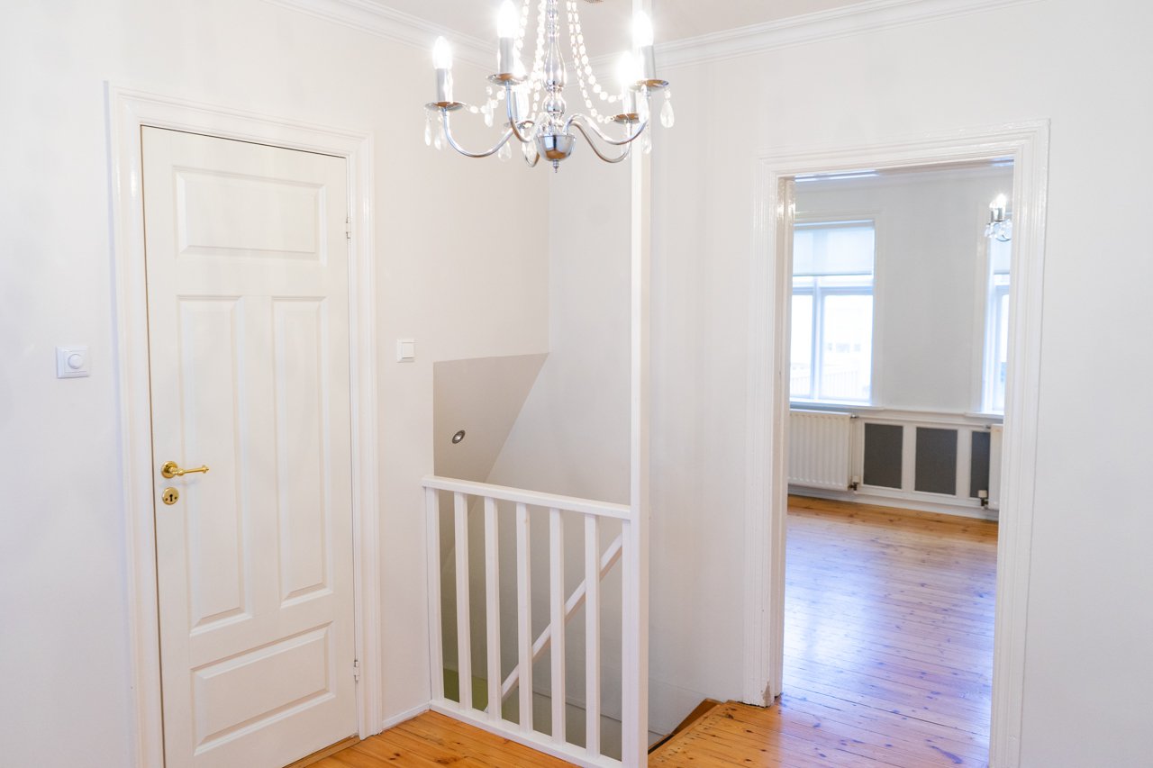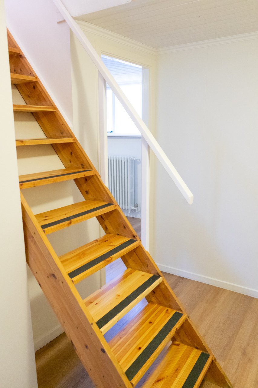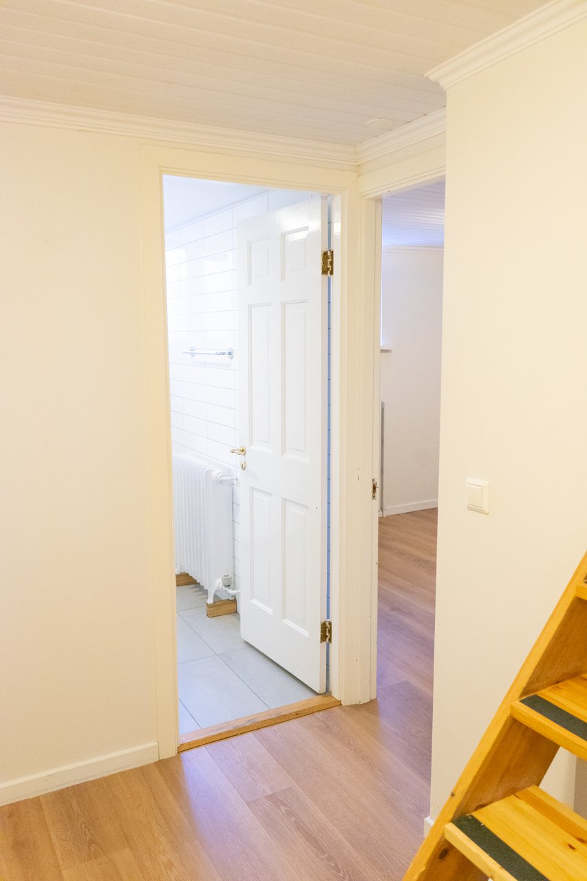 Um er að ræða huggulega 74 fm íbúð. Á efri hæð hússins er opið eldhús og borðstofa þar sem er er gengið inn í rúmgott sjónvarpshol.