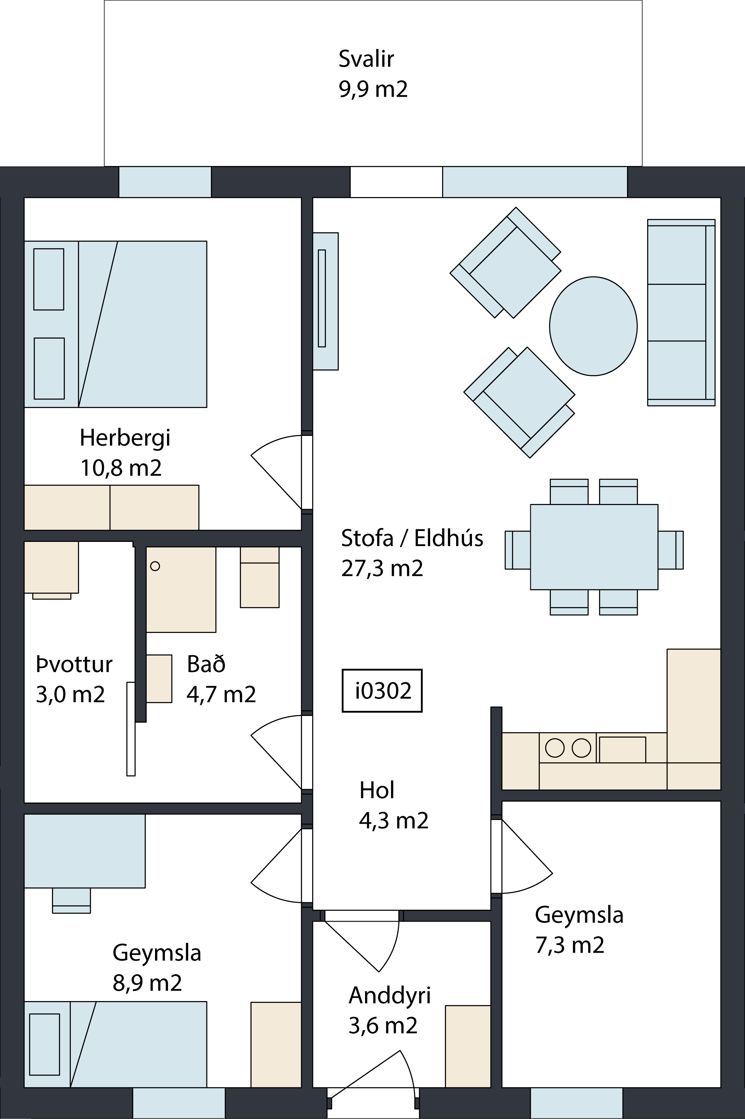 80m2· 3 herbergi