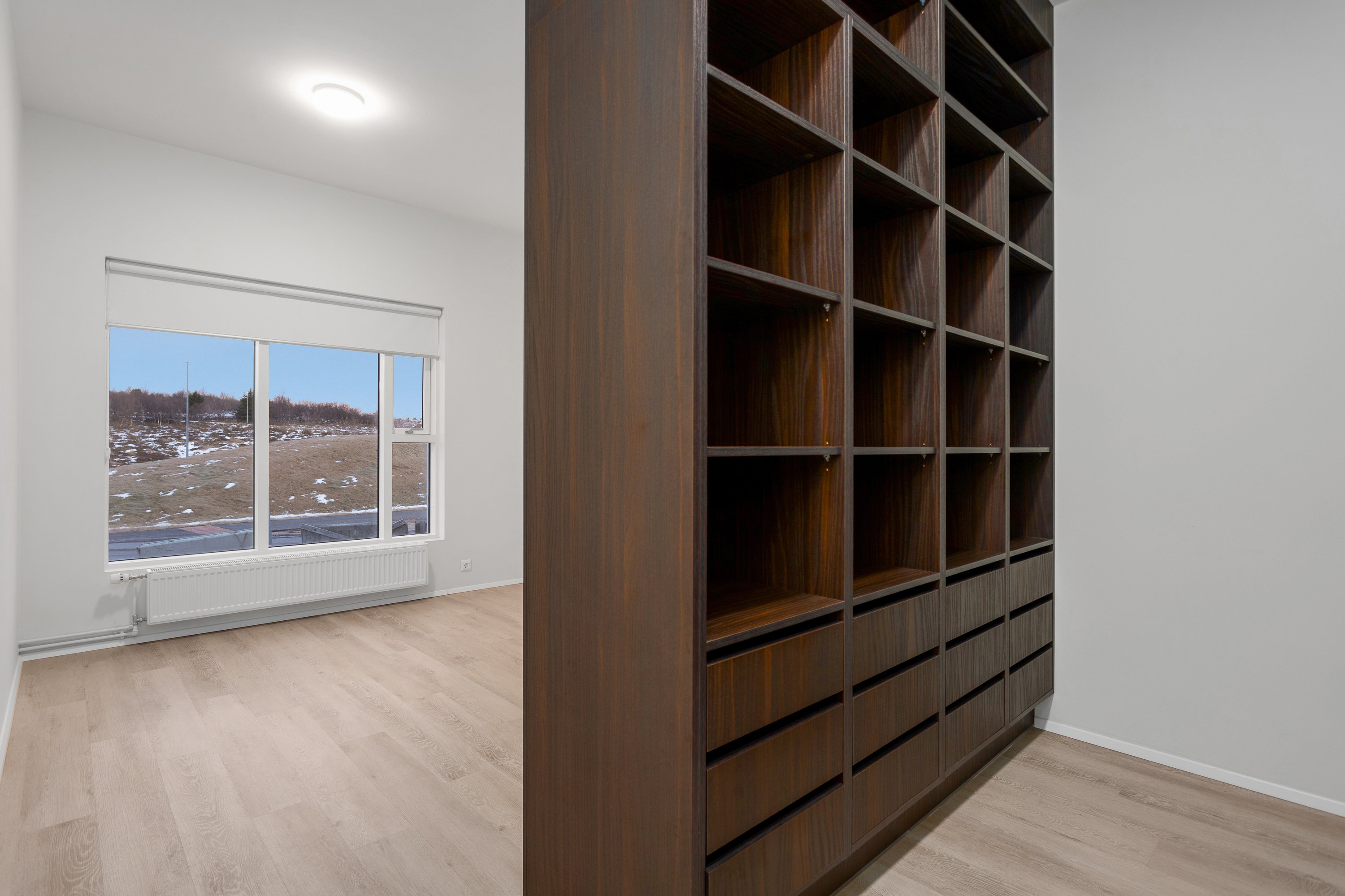 Íbúðin er leigð út með gardínum í gluggum.