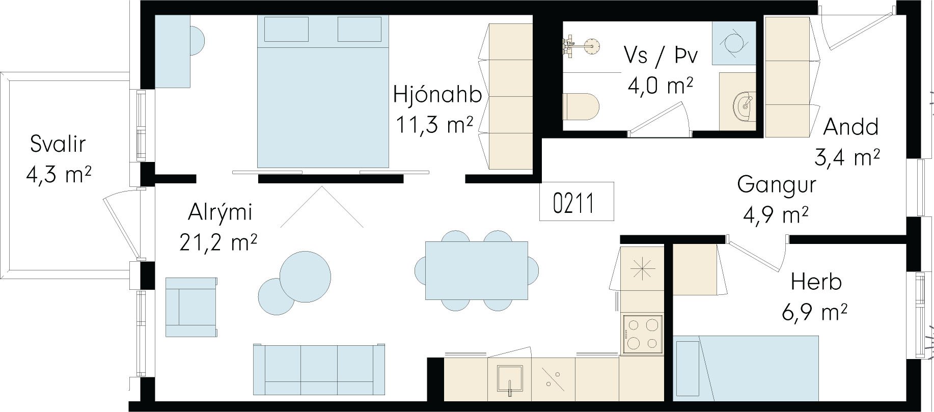 67m2· 3 herbergi
